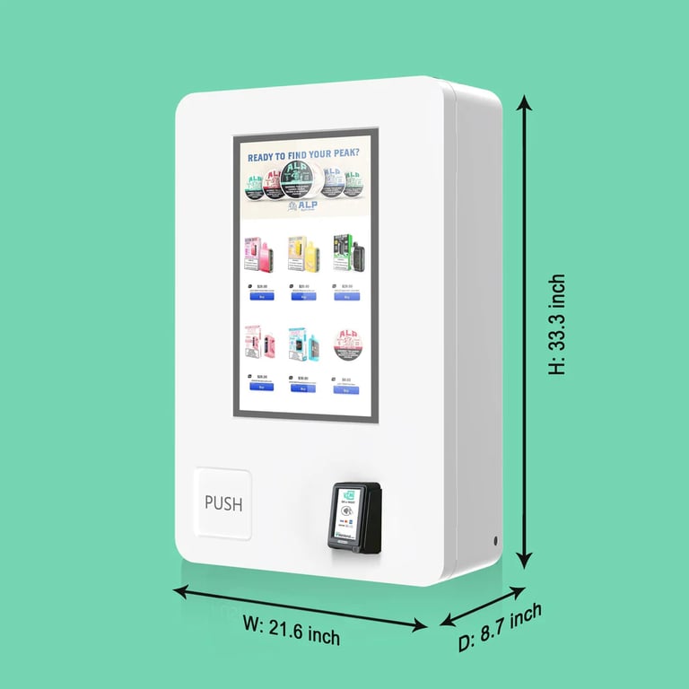 Středně velký automat s širokým výběrem e-cigaret a příslušenství.